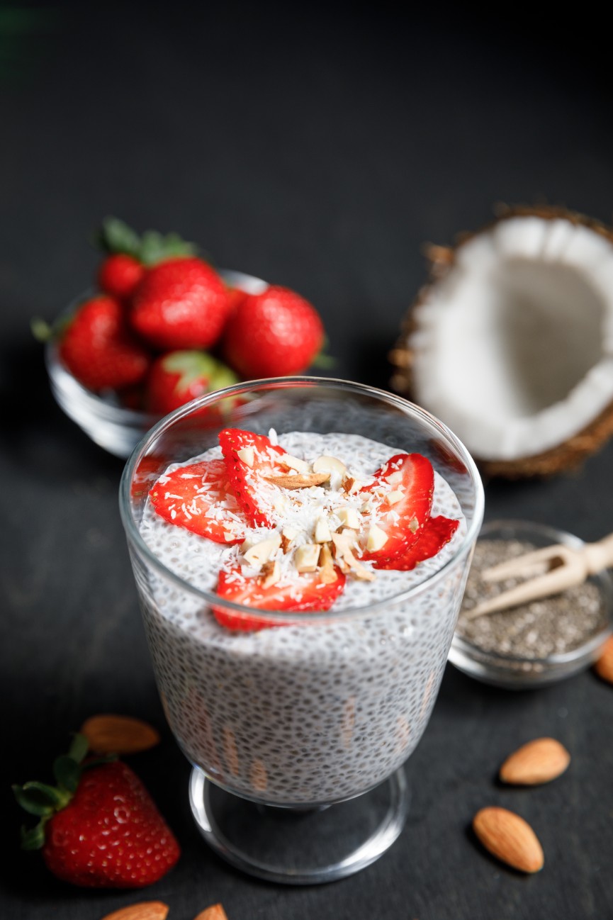Lapte de cocos, Capsuni congelate, Chia, Zahar alb, Apa
