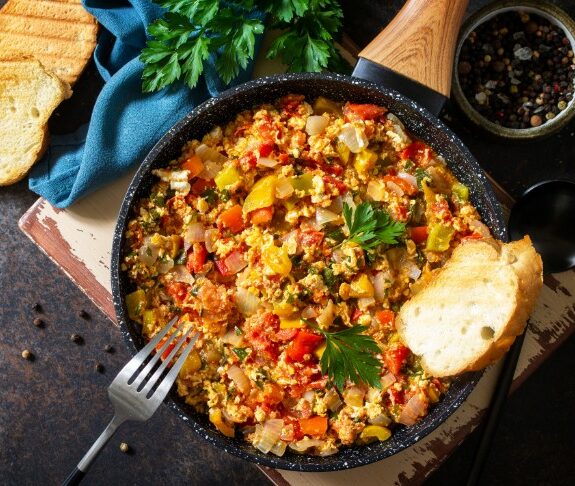 OUA, Castravete fabio, Paine domneasca, Ceapa galbena, Ardei bianca, Rosii, Ulei de floarea soarelui, Patrunjel proaspat, Sare iodata, Piper negru
