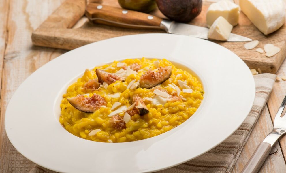 Măr bot de iepure, Orez arborio, GORGONZOLA, BRÂNZĂ FETA, PARMEZAN, BRIE, UNT 82%, PECORINO, MIEZ NUCĂ, Apă, Zeamă de lămâie, Oregano uscat
