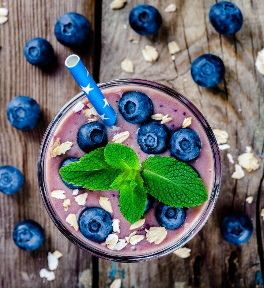 Smoothie cu afine si fulgi de ovaz