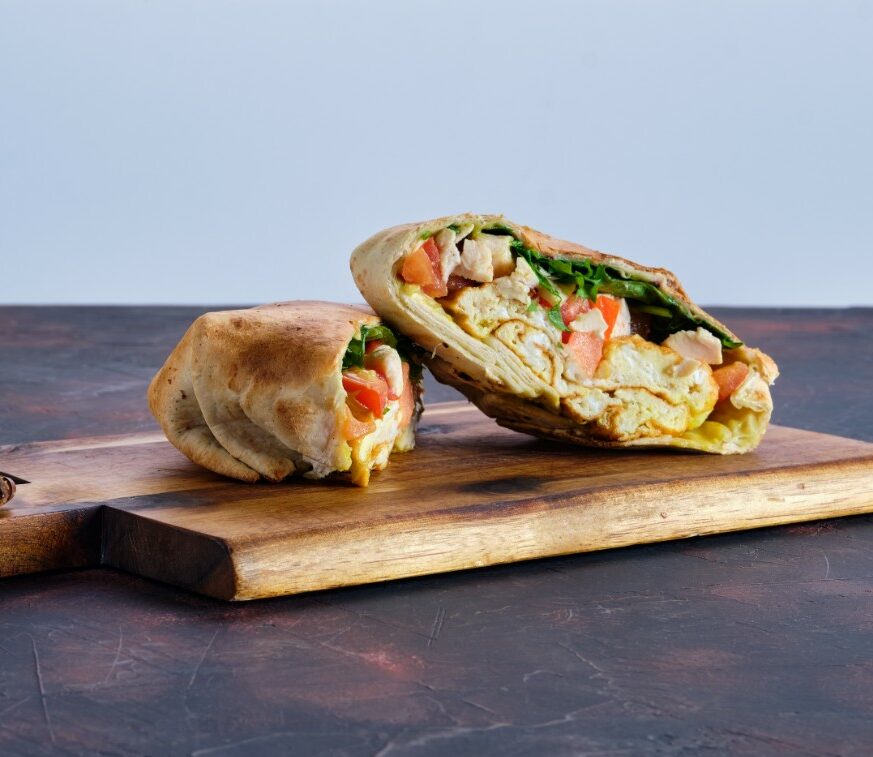 FOI TORTILLA, OUA, Rosii cherry, Mix salata Pikans, CREMA DE BRANZA, CHEDDAR, ARDEI CAPIA COPT, Ulei de floarea soarelui, Spray ulei, Sare iodata, Piper negru, Sumac, Oregano uscat